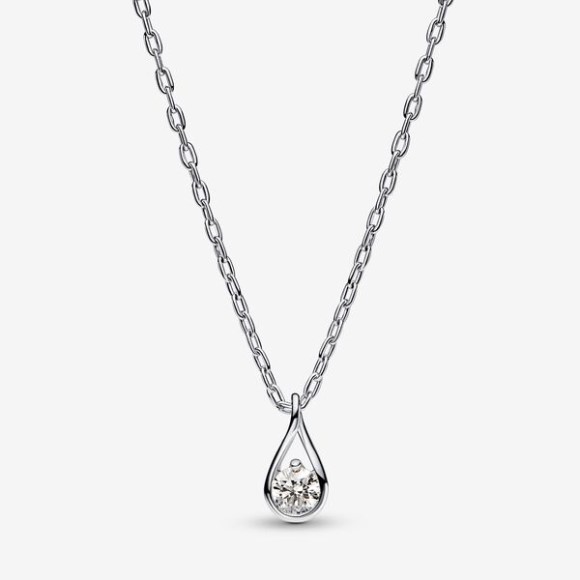 A solid sterling silver pendant hand set with a 0.15 carat lab-created diamond on a matching sterling silver necklace. A powerful reminder of all we are, all we can be, and the infinite possibility the future holds. This pendant features a fiery round brilliant lab-created diamond in a modern infinity setting that flows around the stone and suspends it in mid-air. The chain is easily adjustable to two lengths. Pandora jewellery dornations makes you or your friends and lover more gorgeous.